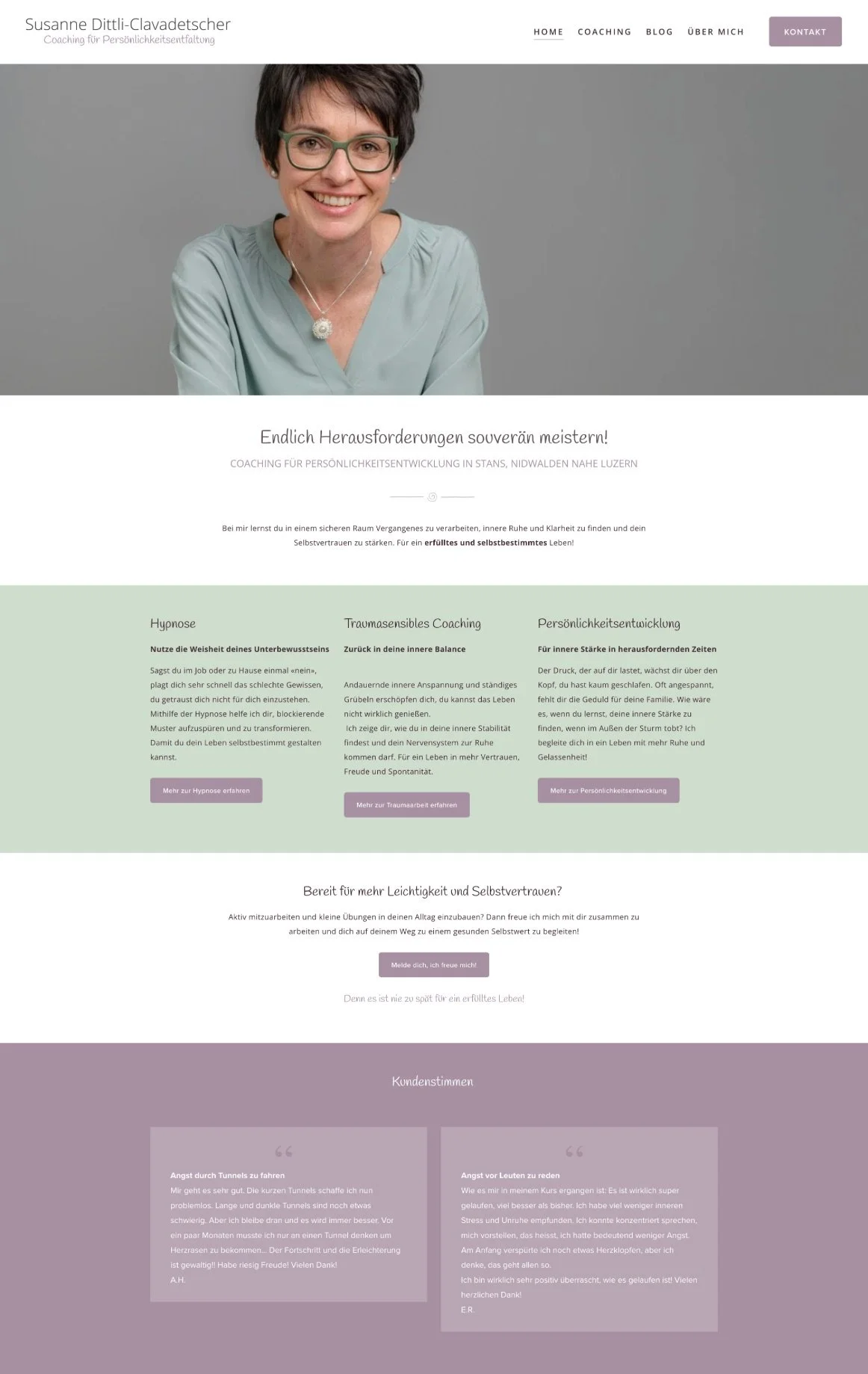 Ich habe mit sehr viel Freude die Website zusammen mit dir entwickelt! Du hast mich von Anfang an äusserst kompetent durch die verschiedenen Phasen der Entstehung begleitet. Besonders hilfreich fand ich deine Tipps zur Farbfindung, da ich am Anfang überhaupt keine Ahnung hatte, was ich wollte. Die Beispiele deiner Kundenavatare waren eine grandiose Inspiration für meine eigenen! Sie haben mir das Schreiben meiner Texte mit Hinblick auf meine Zielgruppe ungemein erleichtert!